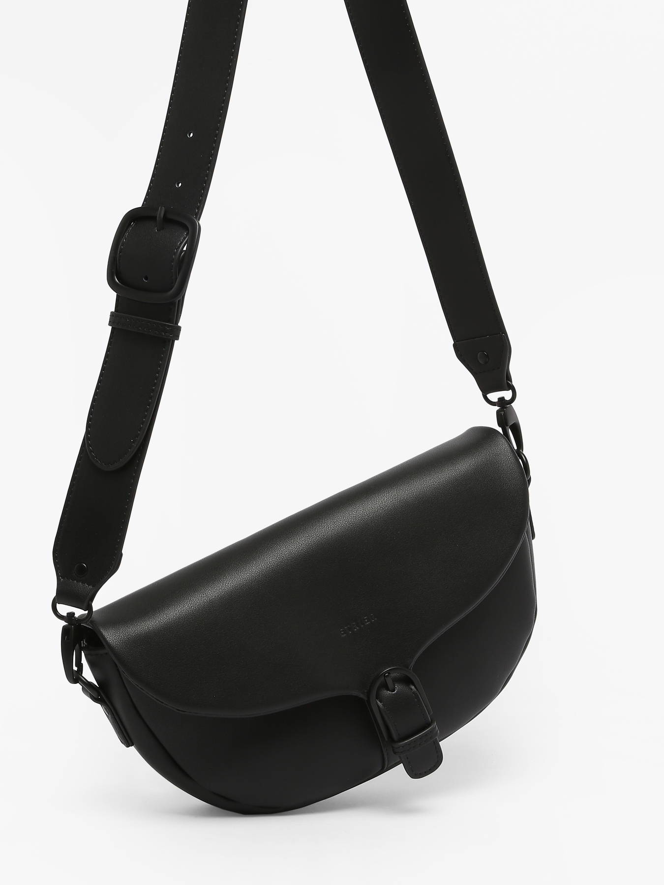 La nouvelle version du sac bandoulière ETRIER de la ligne OXER, au format demi-lune, se pare d'accessoires ton sur ton. Confectionné en cuir de vachette, il dispose d'une poche au dos et se ferme par un rabat et pression aimantée. La bandoulière réglable et amovible en cuir offre une option de porté court en travers. L'intérieur spacieux comprend un compartiment avec une poche plaquée et une poche zippée pour une organisation optimale.