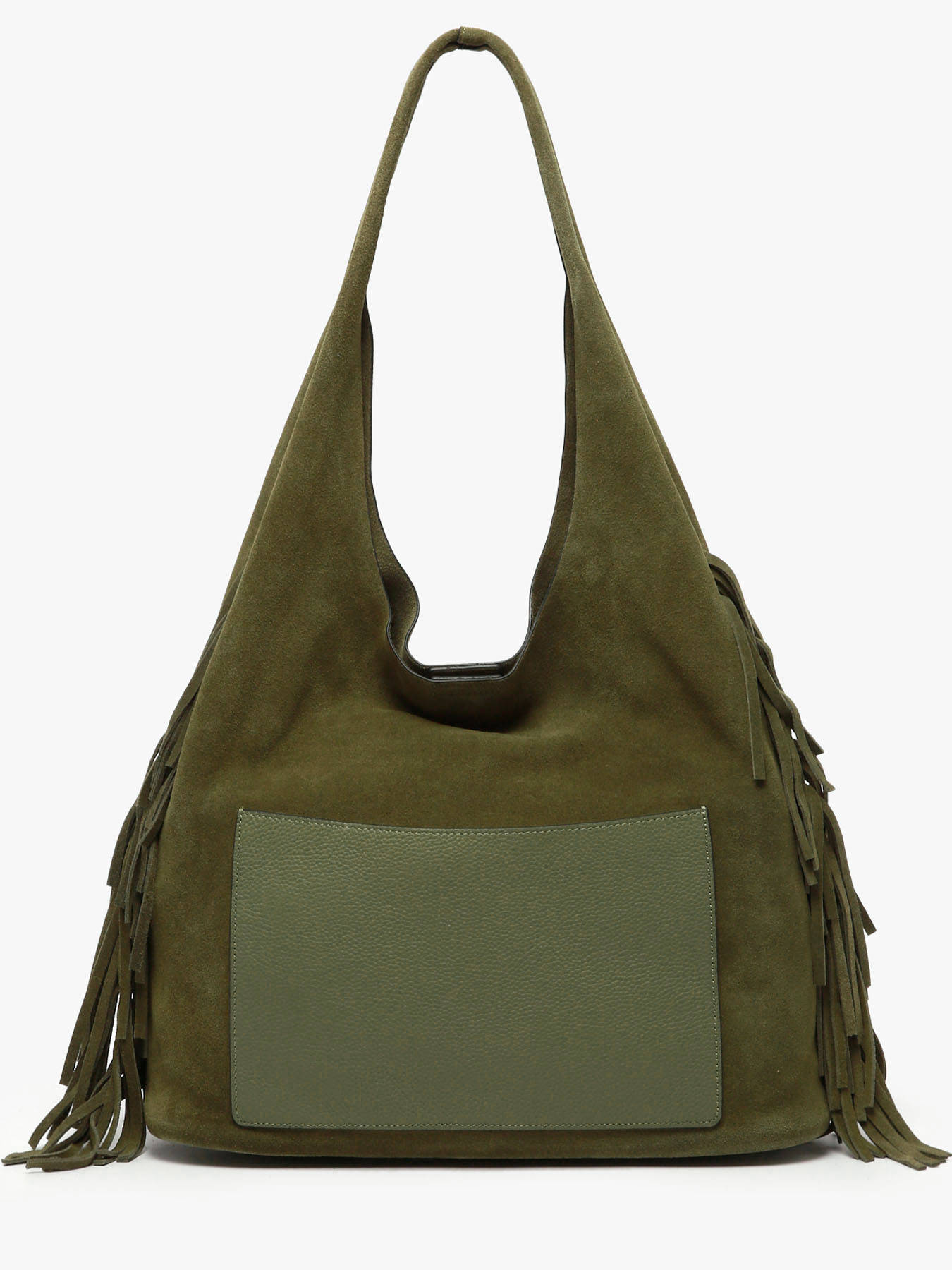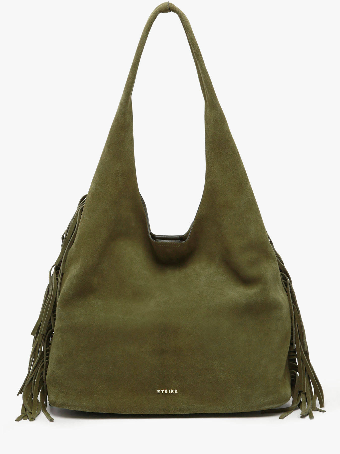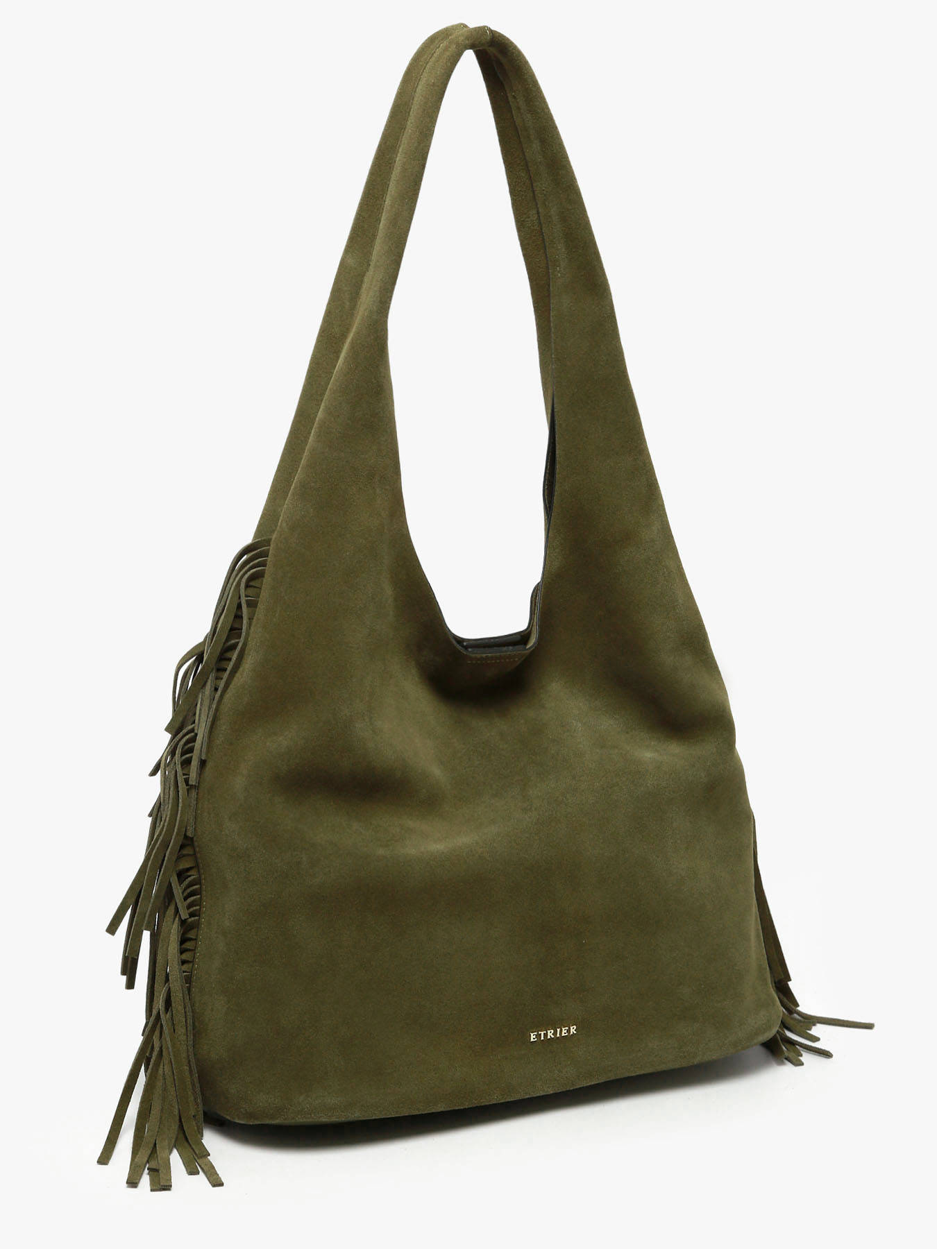 Le sac porté épaule ETRIER de la ligne COUNTRY est confectionné en cuir velours. Ce modèle hobo, proposé ici dans son format L, se distingue par sa silhouette souple, ses franges latérales emblématiques et son esprit bohème chic. Il se ferme à l’aide d’une pression aimantée. À l’intérieur, un pochon amovible permet de sécuriser vos effets personnels tout en structurant l’espace. Le dos du sac accueille une poche plaquée en cuir lisse. Dans son format généreux, ce sac incarne un style libre et élégant, idéal pour l’hiver, avec des textures authentiques et un mouvement naturel.