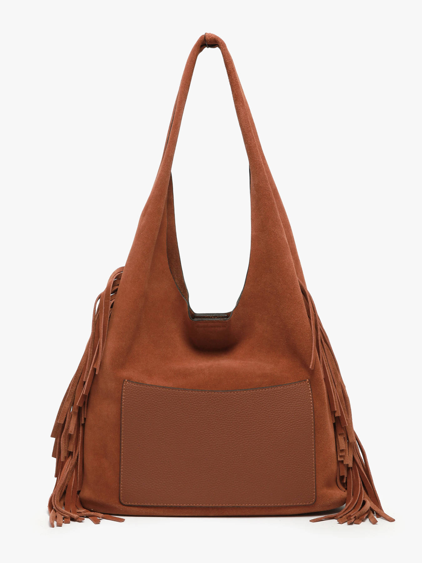 Le sac porté épaule ETRIER de la ligne COUNTRY est en cuir velours. Ce petit format M à la silhouette hobo se distingue par ses franges latérales et son style bohème affirmé. Il possède une poche plaquée en cuir lisse au dos. Il se ferme à l’aide d’un aimant. L’intérieur est doté d’un pochon amovible pour organiser vos essentiels. Ce modèle compact incarne un esprit libre et élégant, parfait pour réchauffer vos tenues hivernales avec caractère et authenticité.